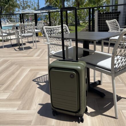 Monos Carry-On Pro The Monos Carry‑On Pro enhances the standard carry-on with a built-in front tech pocket—complete with a padded laptop sleeve and multiple zippered pouches—while retaining Monos’s sleek minimalist design, durable construction, and…
